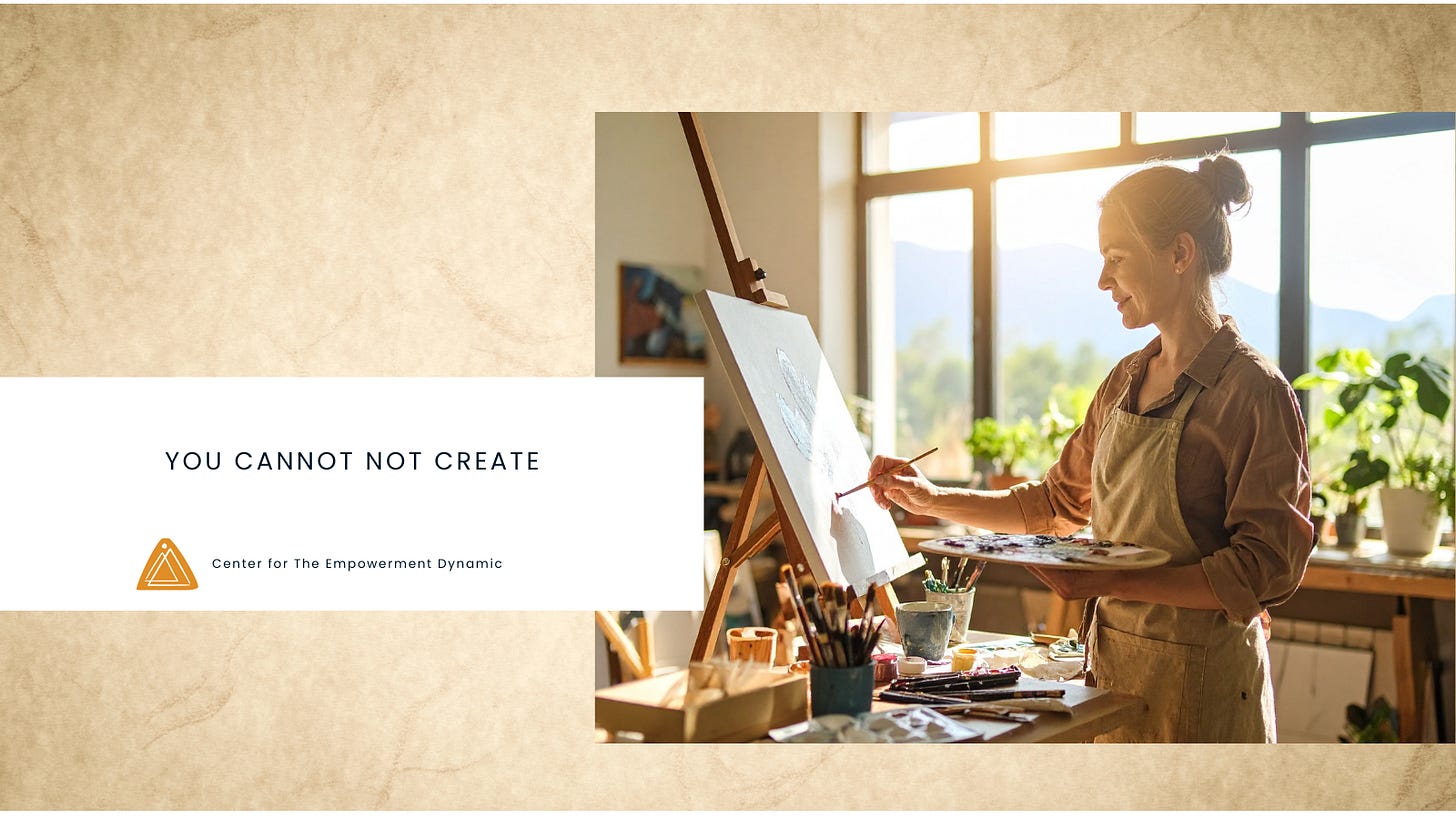 That’s why the reminder you cannot not create is such a powerful bridge to The Empowerment Dynamic (TED*). It returns me to agency and choice: If I’m creating anyway, what do I want to create now?